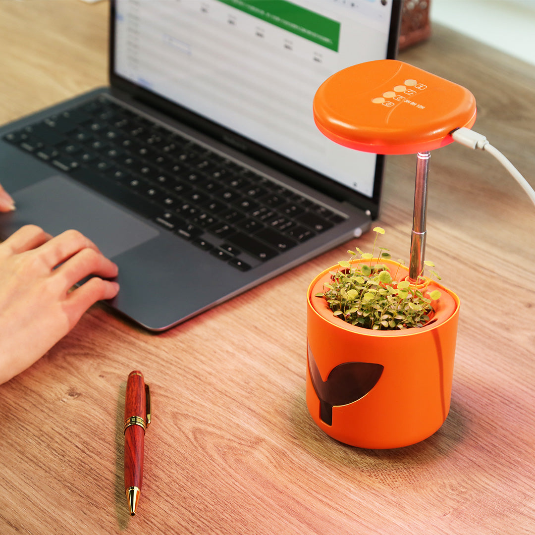 The MarsPlanter is available in three vibrant colors (Coral White, Sea Green, Funky Orange) to match your personality. The transparent screen allows convenient observation of the water level. With 24.5cm of space between the bottom half of the MarsPlanter and the grow light module, it compares favorably to seed-pod products available in the market. And let's not forget, the grow light can be rotated 360 degrees!