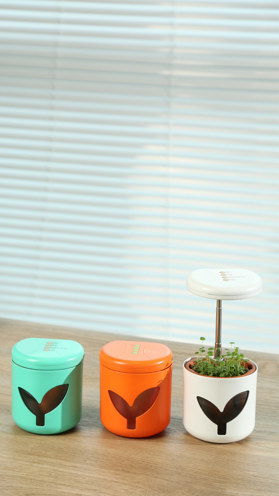 The MarsPlanter is available in three vibrant colors (Coral White, Sea Green, Funky Orange) to match your personality. The transparent screen allows convenient observation of the water level. With 24.5cm of space between the bottom half of the MarsPlanter and the grow light module, it compares favorably to seed-pod products available in the market. And let's not forget, the grow light can be rotated 360 degrees!
